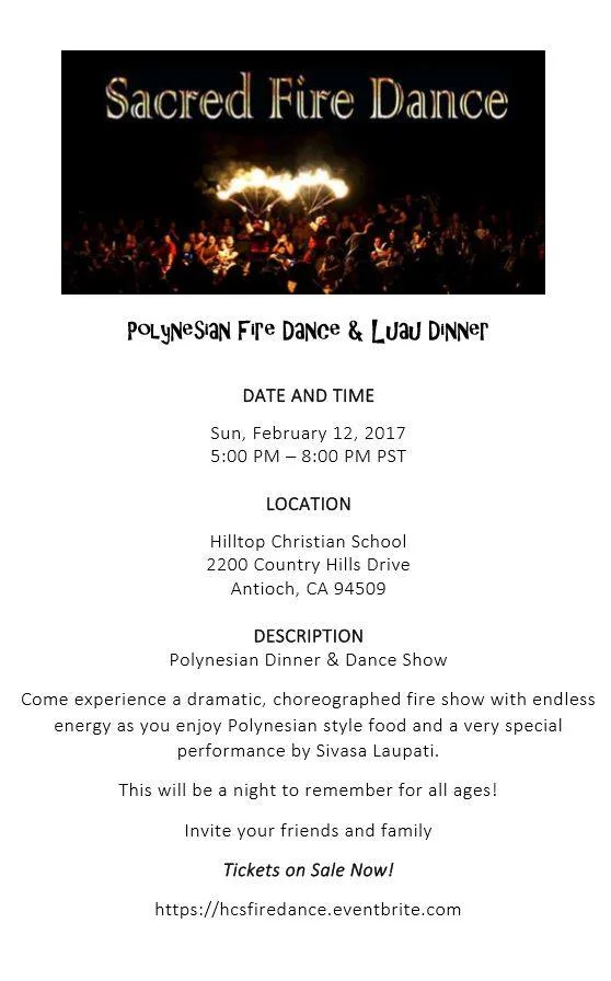 If it is unclear, I will be singing and not performing the fire dance. The funds raised will go to helping students who want to have a Christian education! All are welcome :)