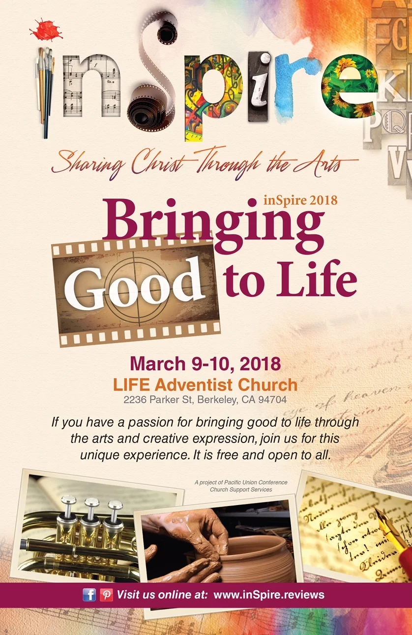 INSPIRE: BRINGING GOOD TO LIFE Saturday, March 10, 2018 11:30 AM 10:30 PM 11:30 22:30 LIFE Adventist Church 2236 Parker Street Berkeley, CA, 94704 United States (map) Google Calendar ICS